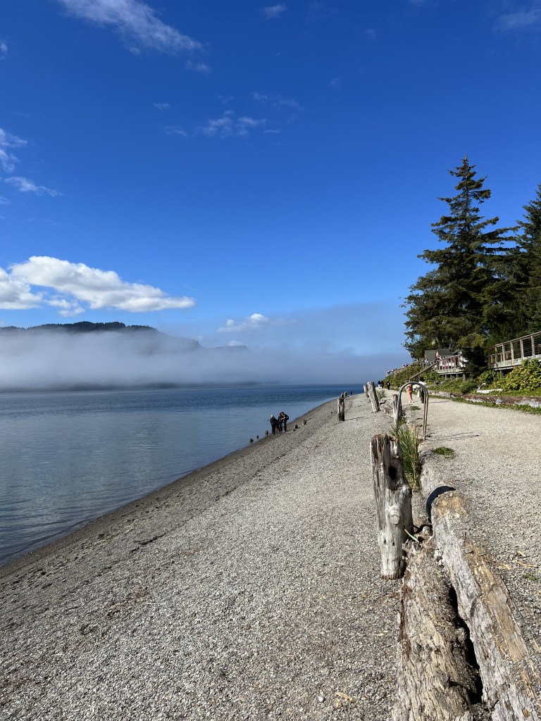 We enjoyed exploring the free part of Icy Strait Point. There is shopping, a museum on the history of Hoonah, some places to eat and get drinks and a shuttle to take you into Hoonah. There are also several excursions you can book for Icy Strait Point as well. We had planned to go back to the ship to eat lunch but ended up eating at the restaurant right when you walk in. It was so good! I had elk chili and throughly enjoyed it. We had been told the whale watching is epic off of Hoonah so we spent the afternoon on a boat, whale watching. It was so much fun. We saw, heard and even felt the splashes from so many whales. The scenery was gorgeous, the boat spacious and the wildlife sighting plentiful. I would highly recommend it. After whale watching we wanted to visit downtown Hoonah but had run out of time to walk. We had heard the walk was beautiful and short. There was one last shuttle bus running. By shuttle bus, i mean a very very old school bus. We were the only ones on the bus, besides the driver and another women who worked at Icy Strait Point. We started chatting and found out the driver was married to the women, whose father was George , our tour guide from earlier. We had the best time learning about Hoonah’s history as they both had grown up there. Then his father got on the bus and showed us pictures of bears he had just seen and told us ever more history. It ended up being a great time and we were so happy we had done it.
