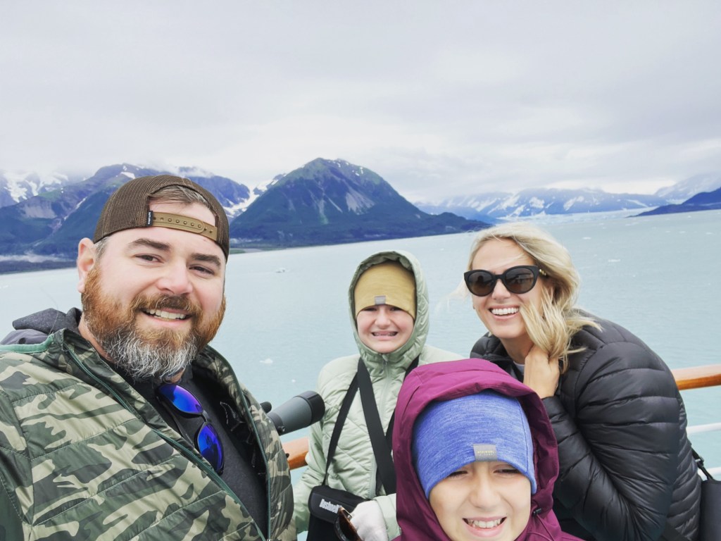 We had packed our luggage for departure the next day. Our suitcases kept rolling around our room. Cabinets doors were opening and closing. The fog horn was blowing non stop as the boat heaved back and forth. We tried to go to bed but no one was able to sleep. I was actually being tossed around in the bed from how the boat was moving. The next morning we were so happy to see daylight but we were not in the port yet. We arrived to Seward three hours late. We found out one of the propulsion engines had been damaged by hitting an iceberg and failed. We were limping back to port at a very slow speed, causing great turbulence. Once we were off the boat, as we explored Seward, we kept seeing the Radiance, still docked. We found out later that day, the next cruise had to be canceled. Unfortunately, the next several cruises had to be cancelled due to this issue and it affected good friends of ours who were set to cruise two weeks after us. They are finally getting to go this spring. Even with the crazy ending to our cruise, I would highly recommend it. We absolutely loved being to see so many ports that are not accessible by land. The sights from the boat were beautiful and for us, we enjoyed having “regular” food for the kids and especially knowing there was allergy friendly food. We also enjoyed not having to drive and felt like it was a real vacation. I expected to not love Alaska as I dislike cold and love the sun and sand. I fell in love with Alaska and can’t wait to book another Alaskan cruise down the road. It is expensive but we found many free things to do in several ports. I highly recommend it and hope you enjoy it as much as we did.