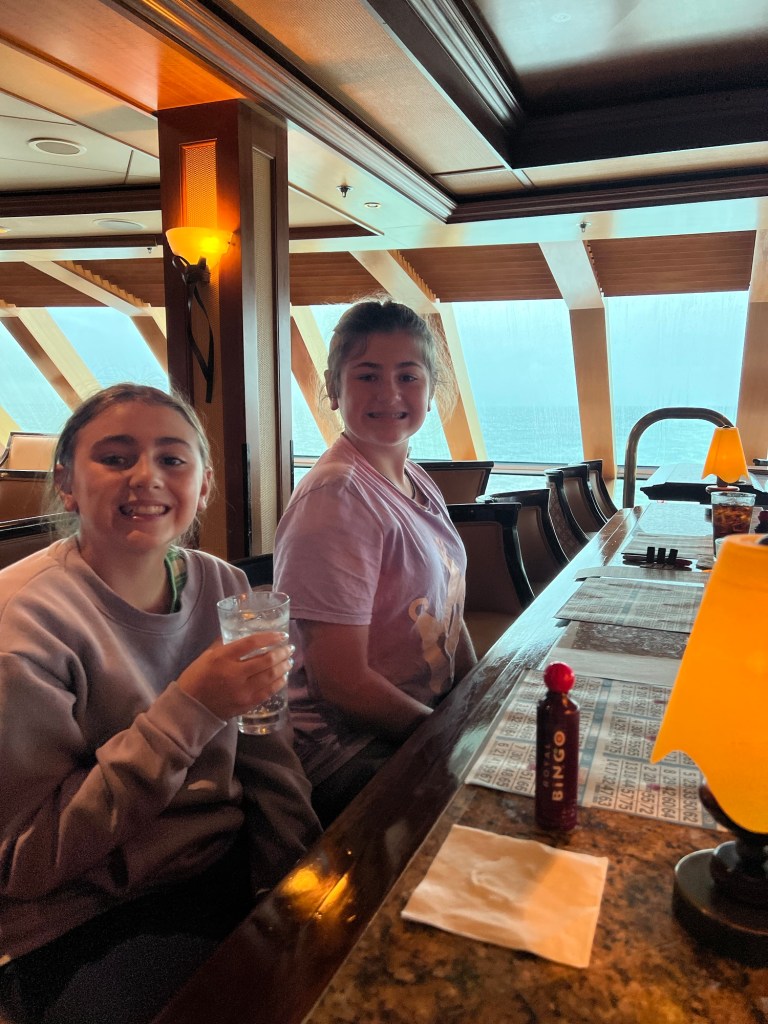 After we left the beautiful Hubbard glacier, our ship headed back to port in Seward. The wind was really picking up and the boat had started rocking. Around 4pm or so, we went to go play bingo. Yes, please judge us. We have our minor children gambling. Our kids actually love playing bingo. They think it’s so much fun to mark off the numbers and Royal usually keeps their bingo pretty tame. The rule is, of course, if they won, we would have to be the ones to collect the prize. And yes, the host made fun of us a few times too. And no, they weren’t the only kids in there. But while Radiance is a great boat, there is not a lot for kids to do so we did end up playing bingo, trivia and doing some of the family activities from the kids club. Watch my daughters, Piper, ship tour and some of things she enjoyed doing on our YouTube channel. As we are playing bingo, there was a loud sound of metal grinding and churning. It was scary and everyone jumped up to look out the window.